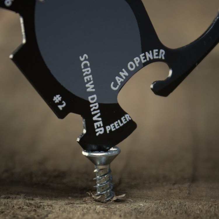 This sturdy stainless steel 18 in 1 multitool fits into a wallet’s card slot, ready for use whenever needed.